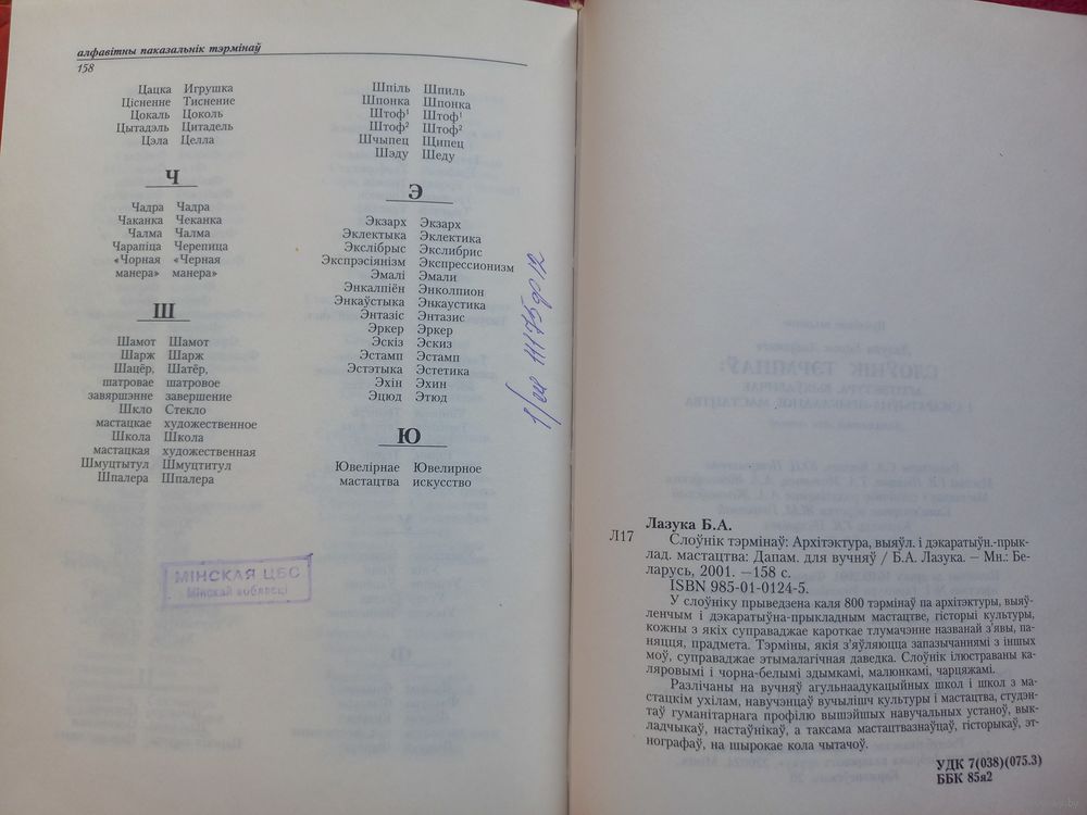 Лазука Б.А. Архітэктура, выяўленчае і дэкаратыўна-прыкладное мастацтва : слоўнік тэрмінаў. Архитектура, изобразительное и декоративно-прикладное искусство: словарь терминов. 2001 г.