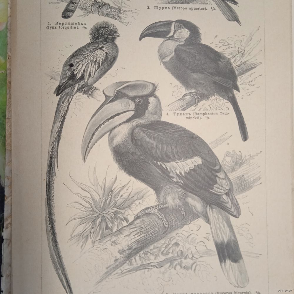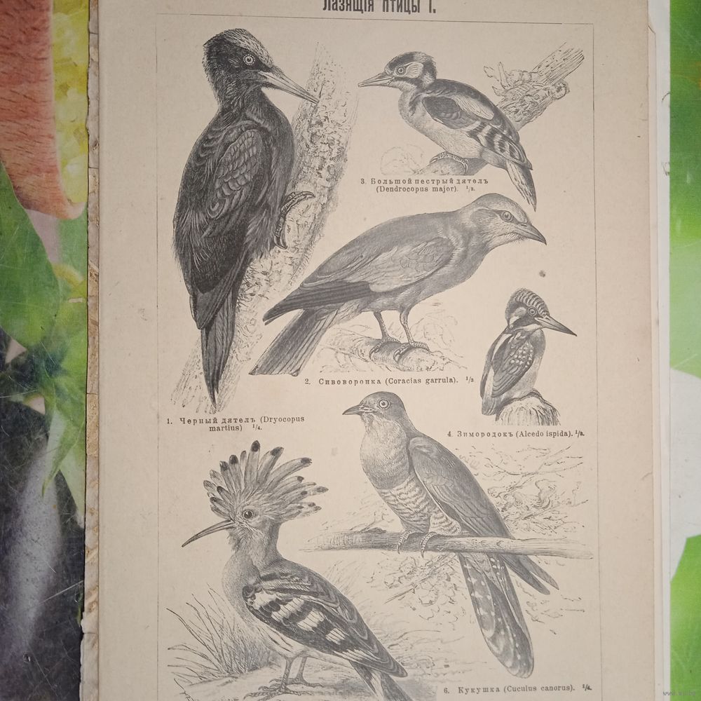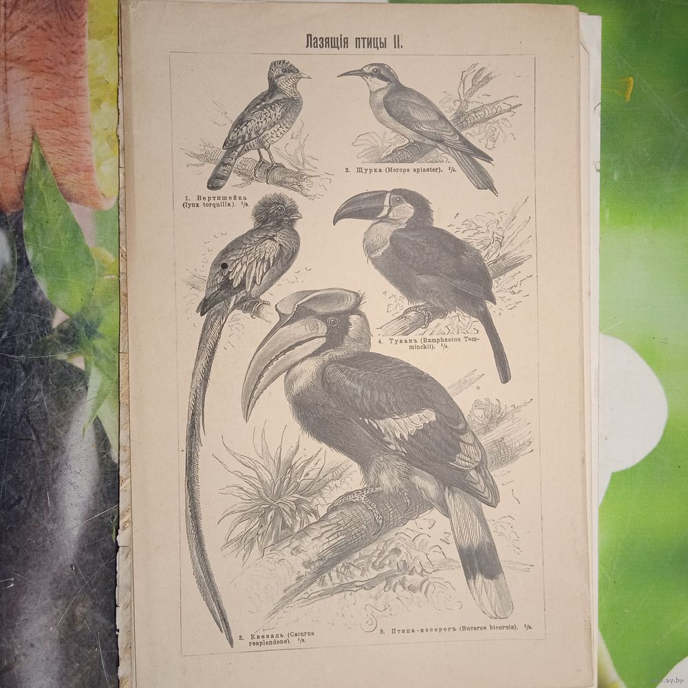 Лазящия птицы. 1. 2. Энциклопедическая гравюра СПБ конец 19века 24х16см.