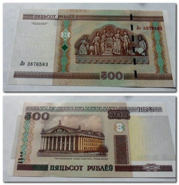 Лэ 3876583 - 500 рублей РБ 2000 г.в.