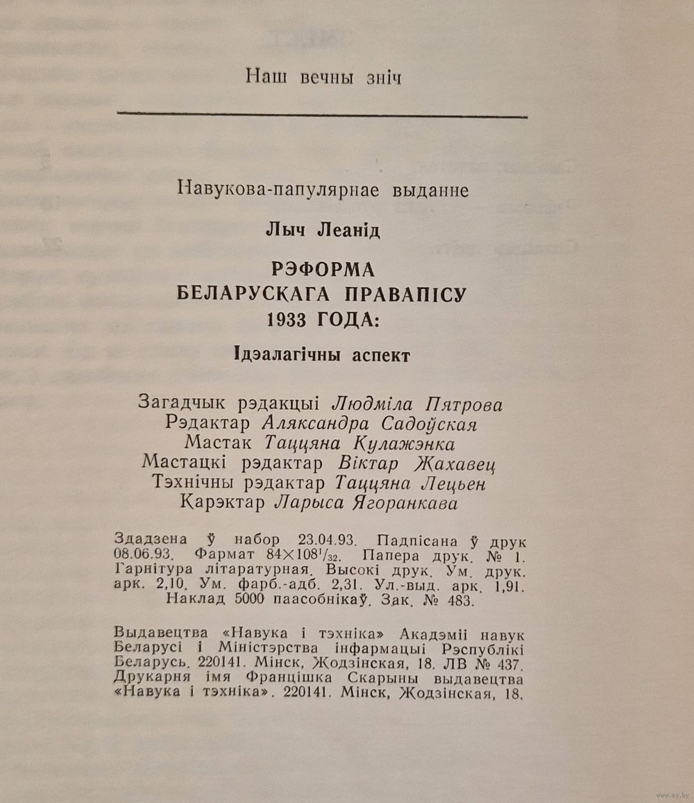 На вокладцы памылка друку: 1993 год замест 1933 (на тытуле датаванне пададзена правільна).