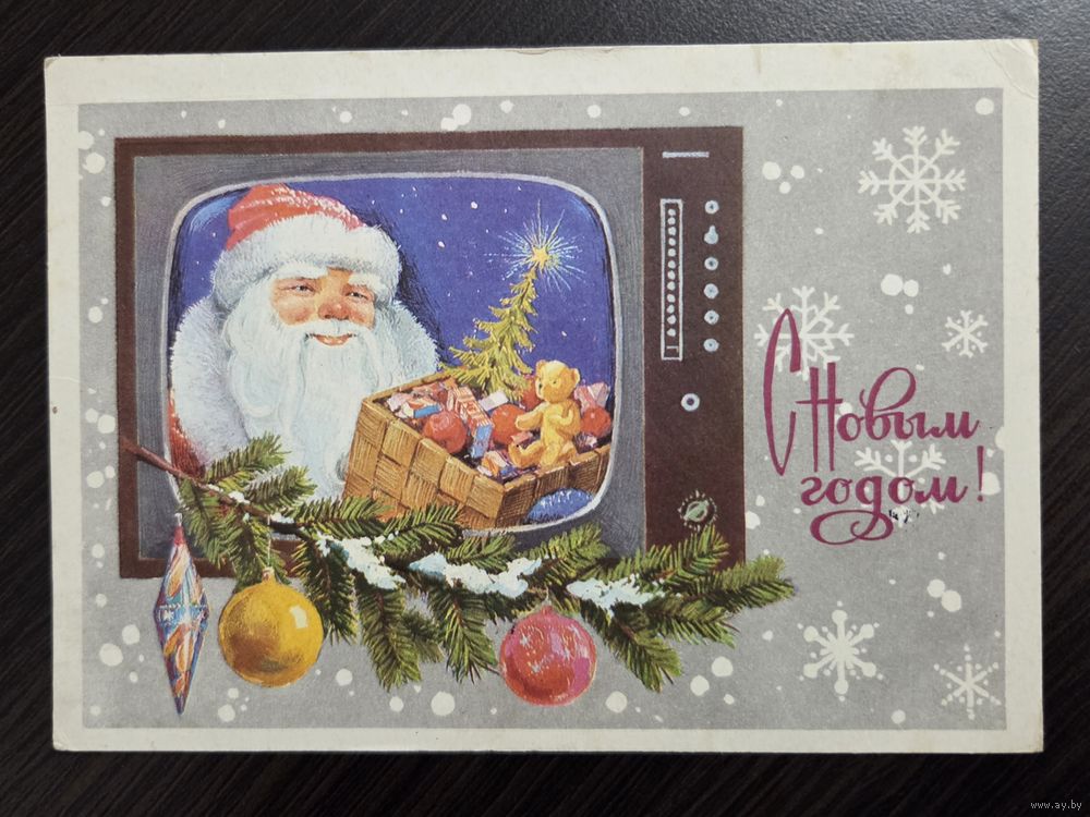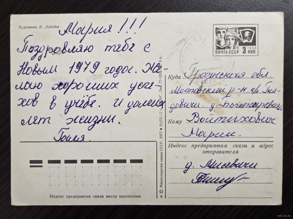 Лебедев С Новым годом 1977 подписанная открытка СССР