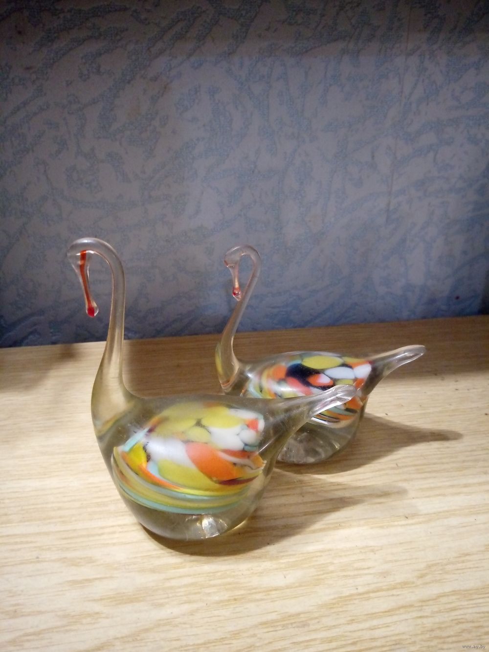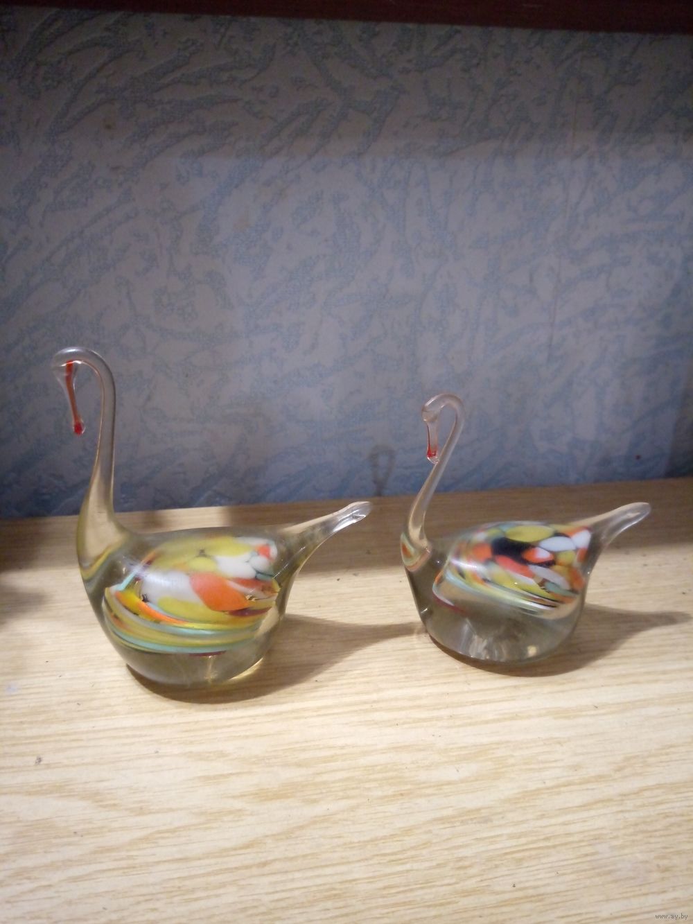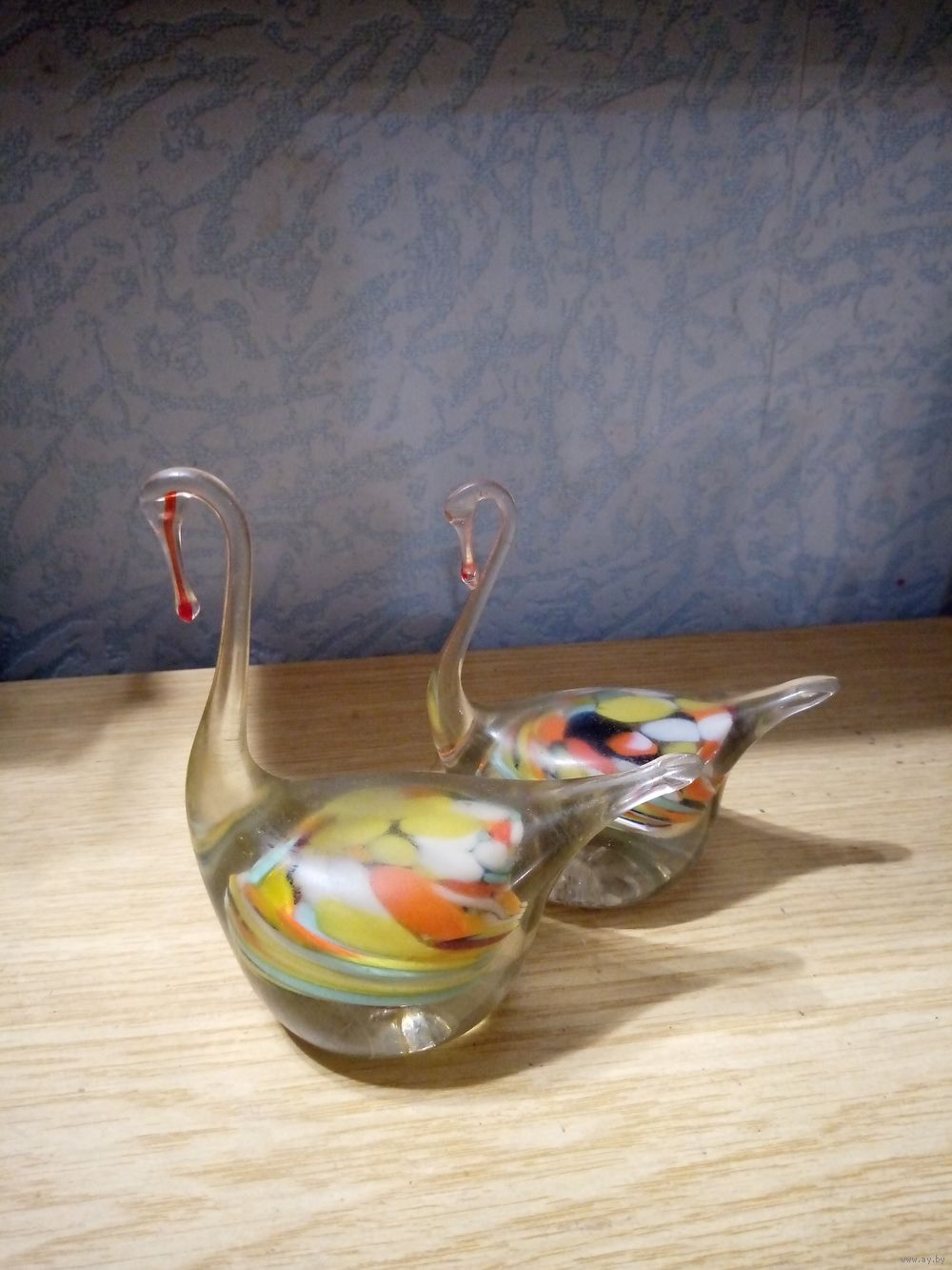 Лебединая пара из 2-х стеклянных разноцветных лебедей.