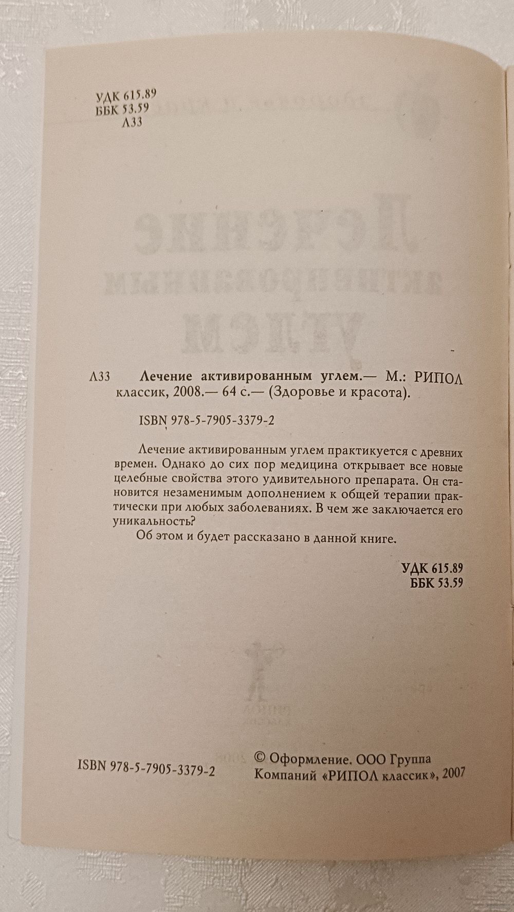 Лечение активированным углем. - М.: РИПОЛ классик, 2008. — 64 с. — (Здоровье и красота), мягкая обложка.