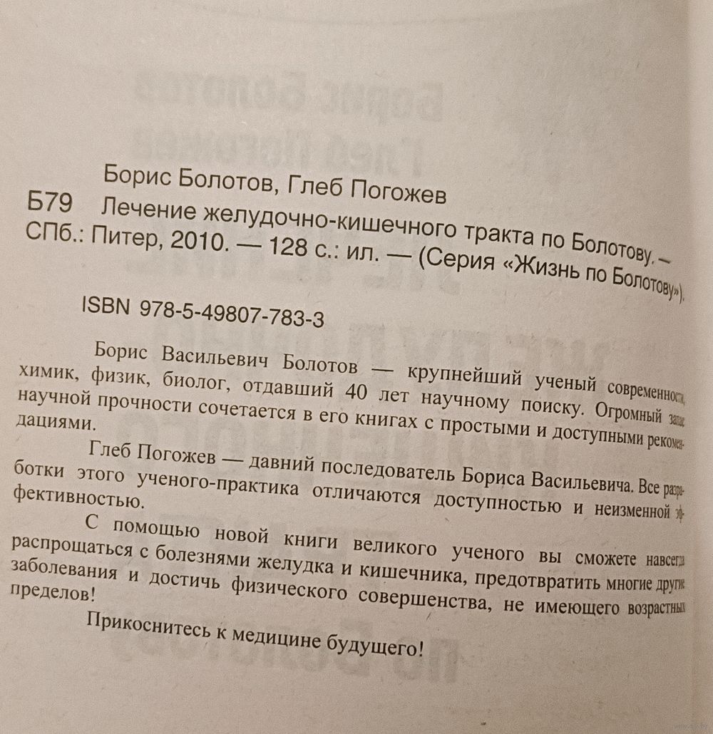 Лечение желудочно-кишечного тракта по Болотову. Борис Болотов, Глеб Погожев. СПб.: Питер, 2010. — 128 с.: ил. — (Серия «Жизнь по Болотову»)., мягкая обложка.