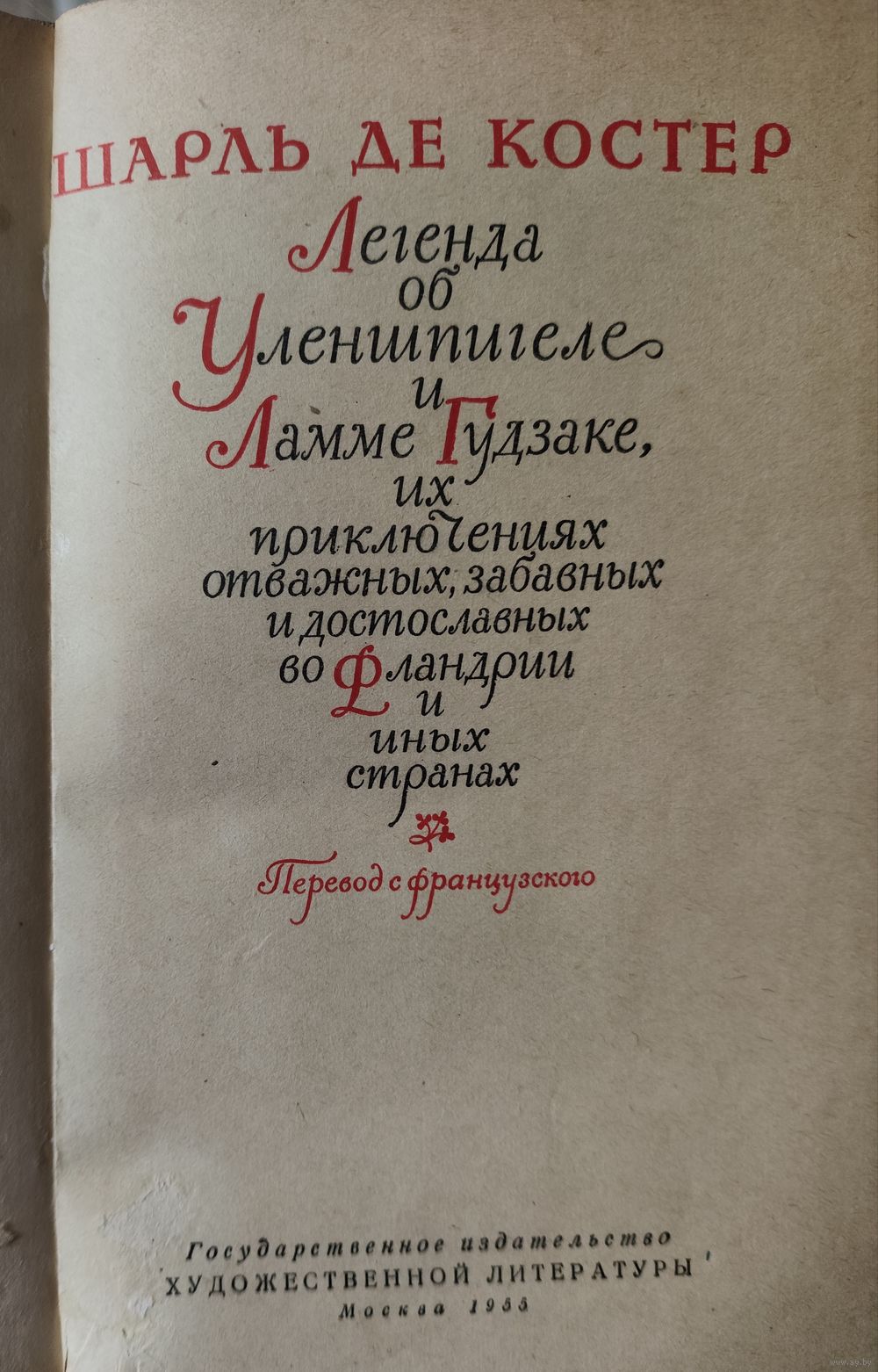 ЛЕГЕНДА ОБ УЛЕНШПИГЕЛЕ. Мировая классика! СТАРОЕ ИЗДАНИЕ 1955 г.! ИНТЕРЕСНАЯ ДАРСТВЕННАЯ НАДПИСЬ!!!