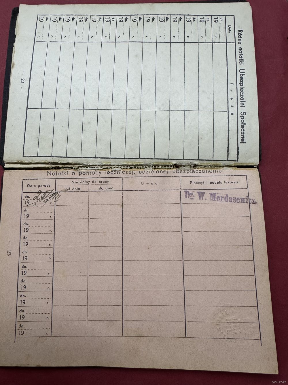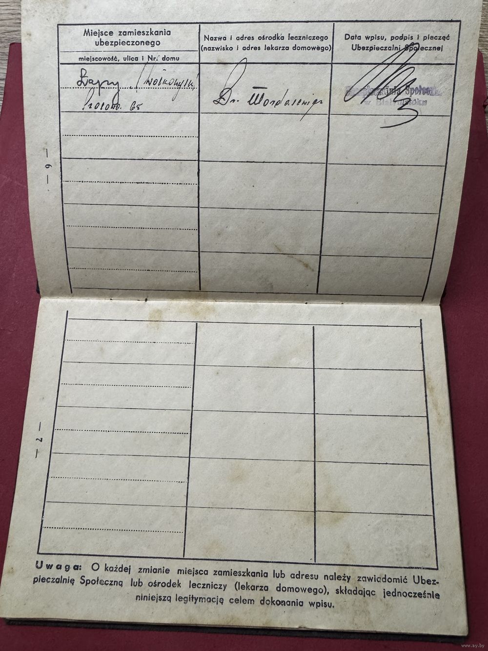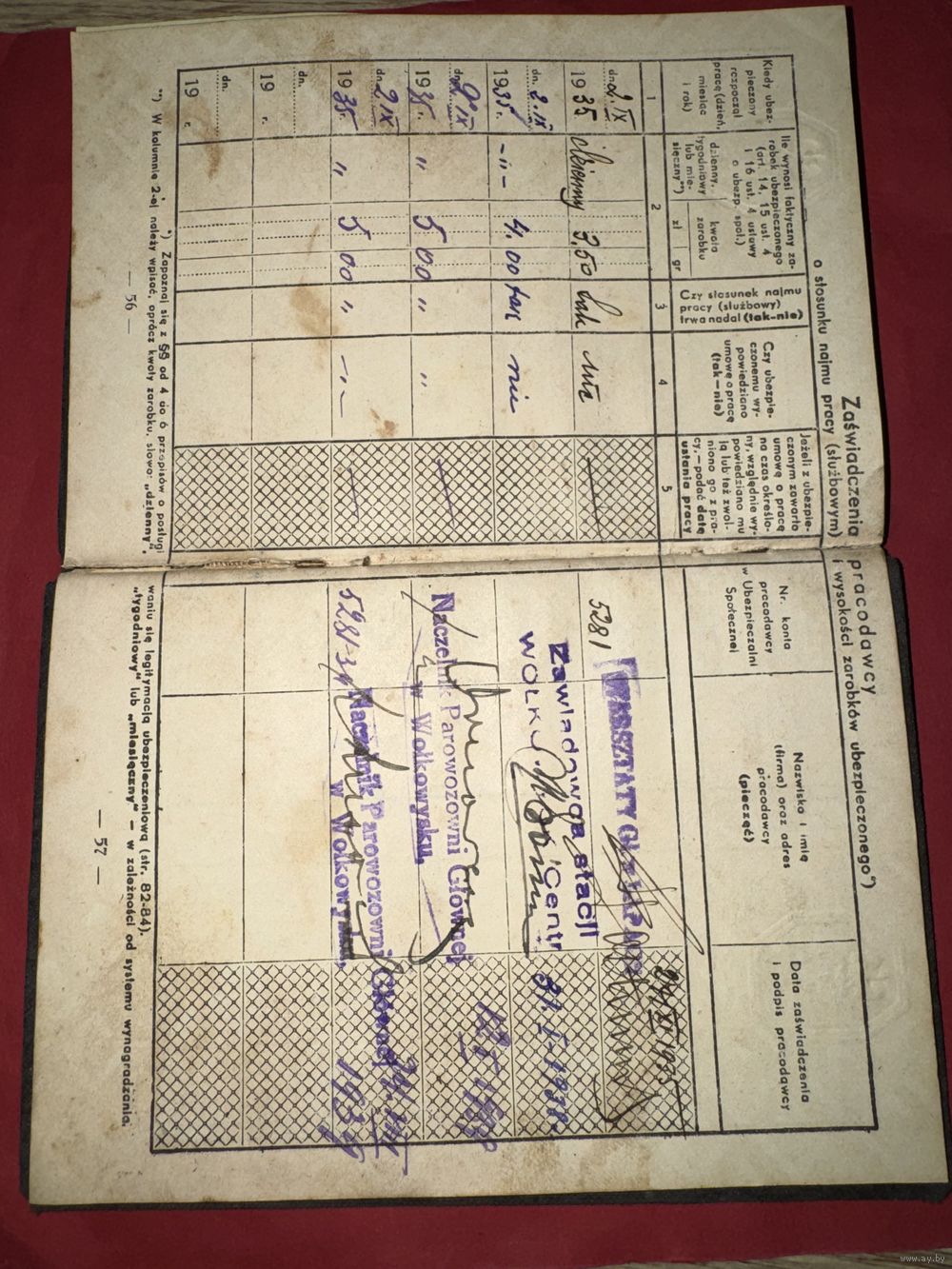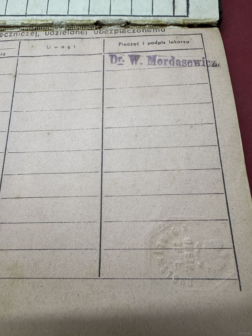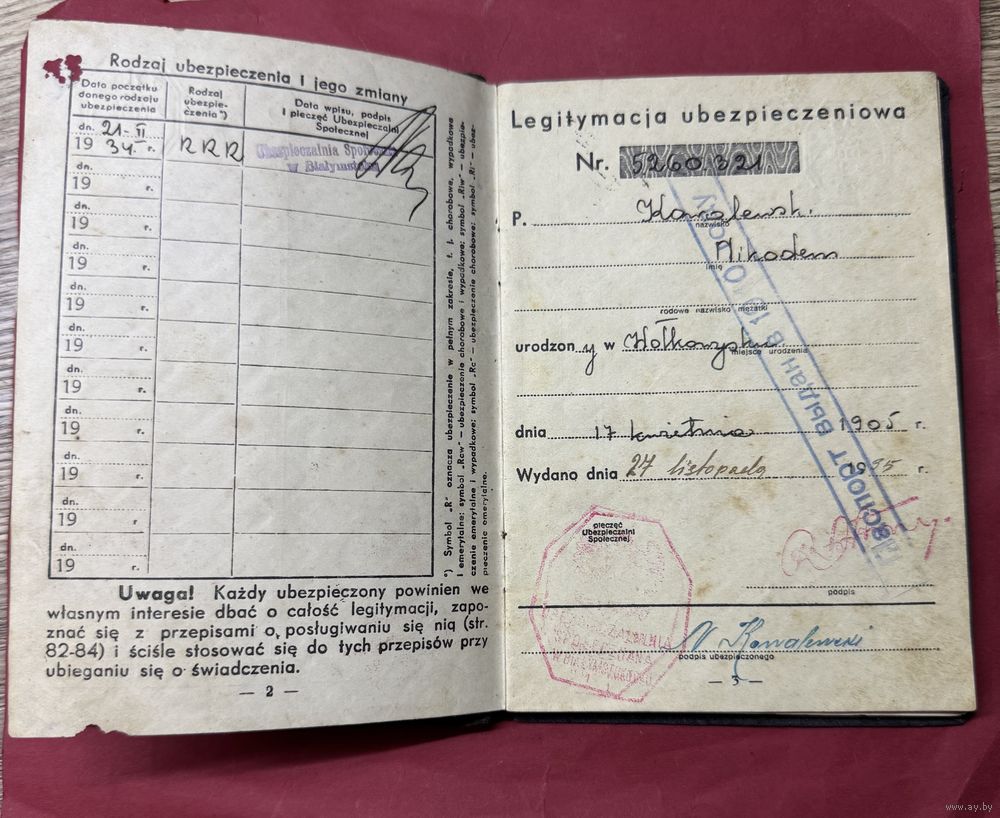 Legitymacia ubezpieczenowa.1935г.