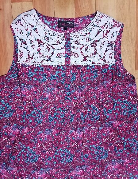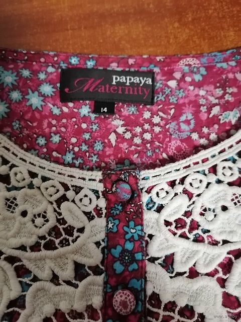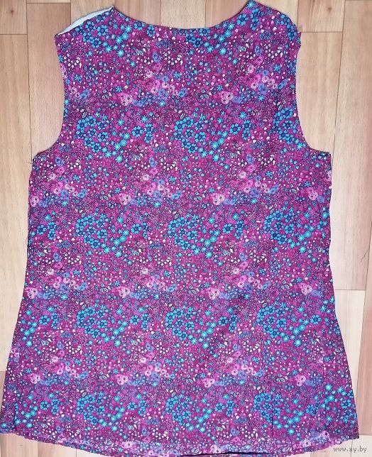 Легкая импортная х/б туника для беременных, новая, р-р 46-48, покупали в Польше, есть один дефект (фото 5), застряла в замке сумки и при открывании была немного порвана (аккуратно зашито, и за счет яркой расцветки это практически не видно). Потому так дешево продаю. ПОГ 50см, длина сзади 70см, спереди 75см.