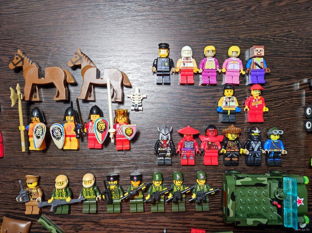 Конструктор Лего оригинал (на 2 фото 3 фигурки и детали) и аналог от компании Enlighten. Продается все что на фото. Фигурки, машинки, животные, аксессуары, детали. В подарок фирменный бумажный пакет Lego.