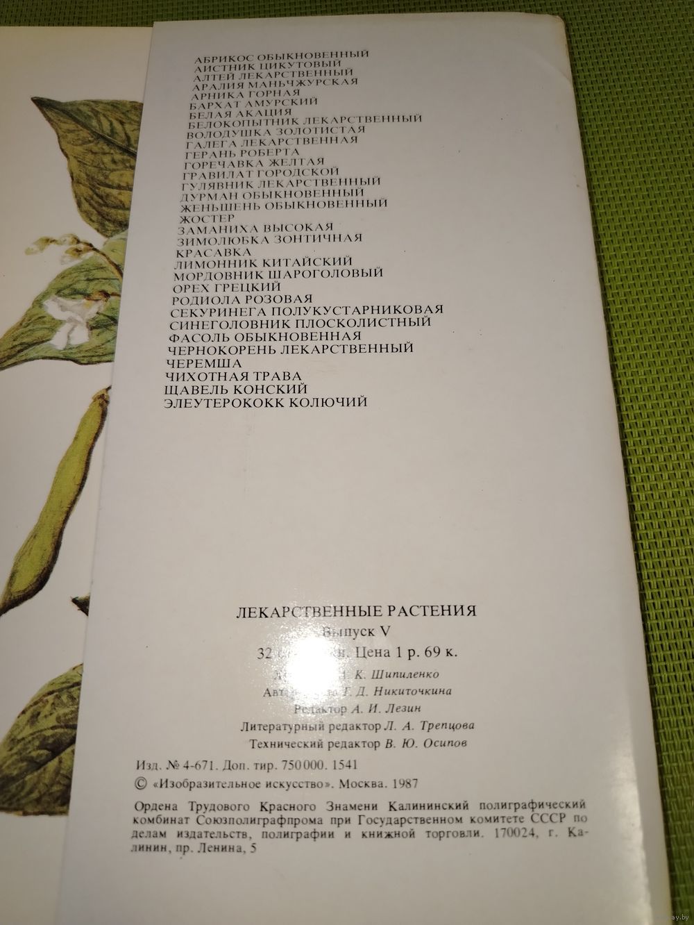 Лекарственные растения. 32 открытки. 5 выпуск. М., 1987.
