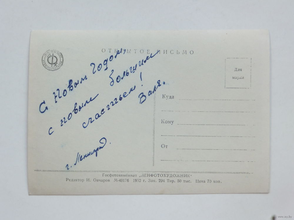 Ленфотохудожник с новым годом 1952 9х14 см