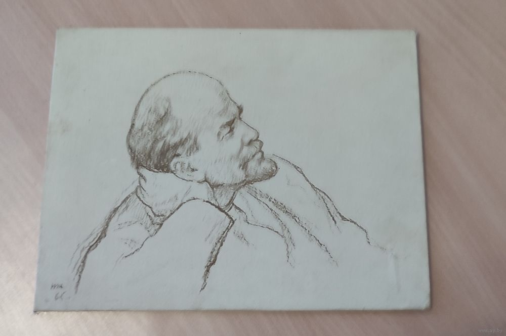 Ленин слушает музыку.Репродукция на ткани 1969г