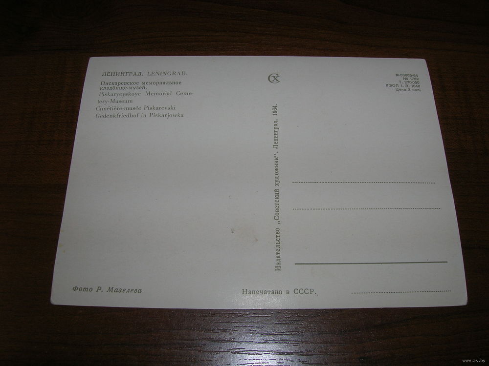 Ленинград Пискаревский мемориал 1964 год чистая