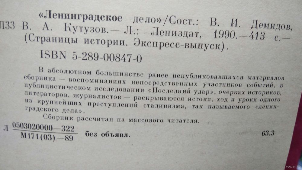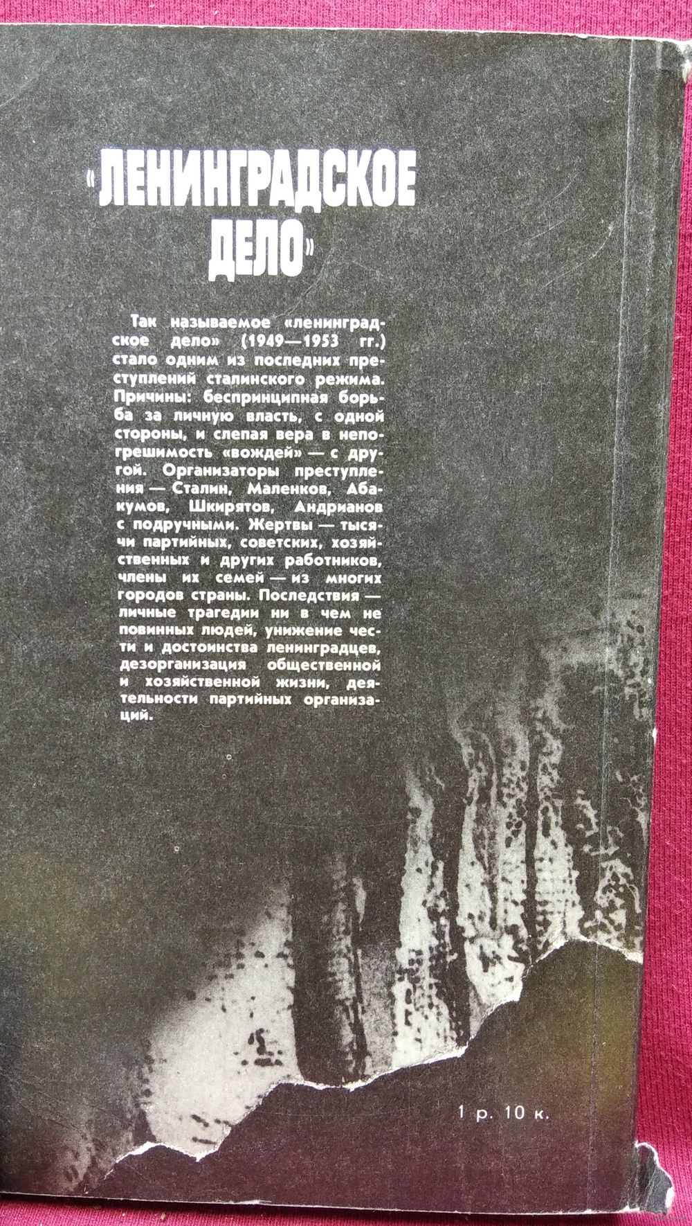 В абсолютном большинстве ранее не публиковавшихся материалов сборника — воспоминаниях непосредственных участников событий, в публицистическом исследовании *Последний удар*, очерках историков, литераторов, журналистов — раскрываются истоки, ход и уроки одного из крупнейших преступлений сталинизма, так называемого *ленинградского дела*.