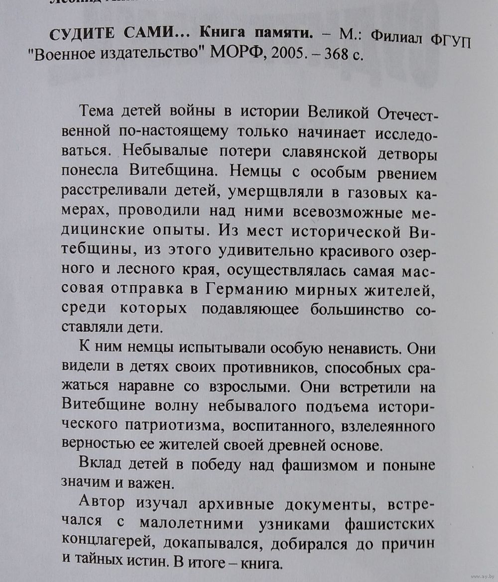Леонид Аникеев. Судите сами ... Книга памяти. Москва : Филиал Воениздата, 2005 г. 367 с. Твердый переплет. Обычный формат.