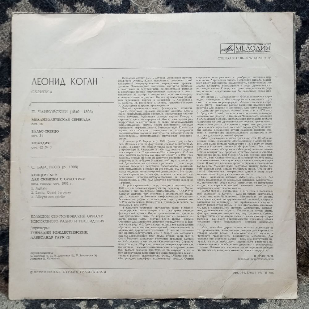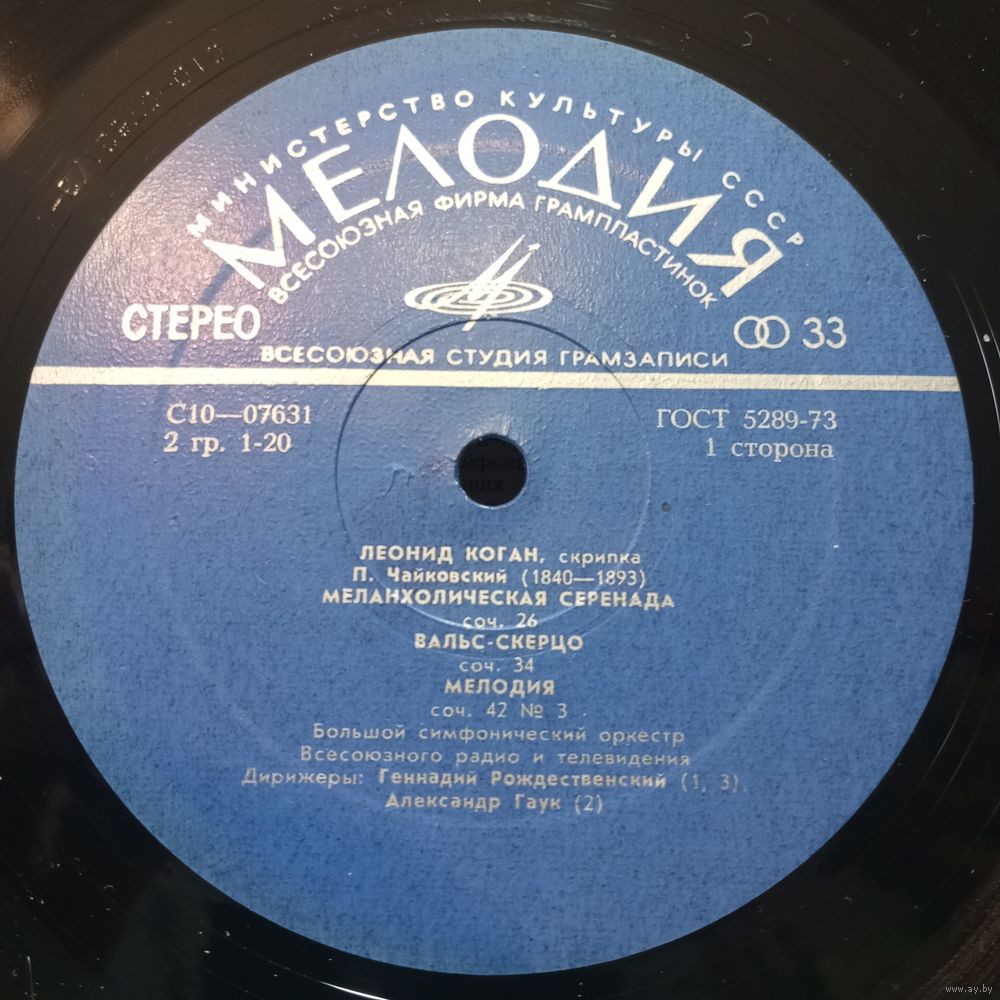 Леонид Коган, Большой СО Всесоюзного радио, дир. Г. Рождественский, А. Гаук* - П. Чайковский. Меланхолическая серенада. Вальс-скерцо. Мелодия / С. Барсуков. Концерт No.2 для скрипки с оркестром* - ВСГ