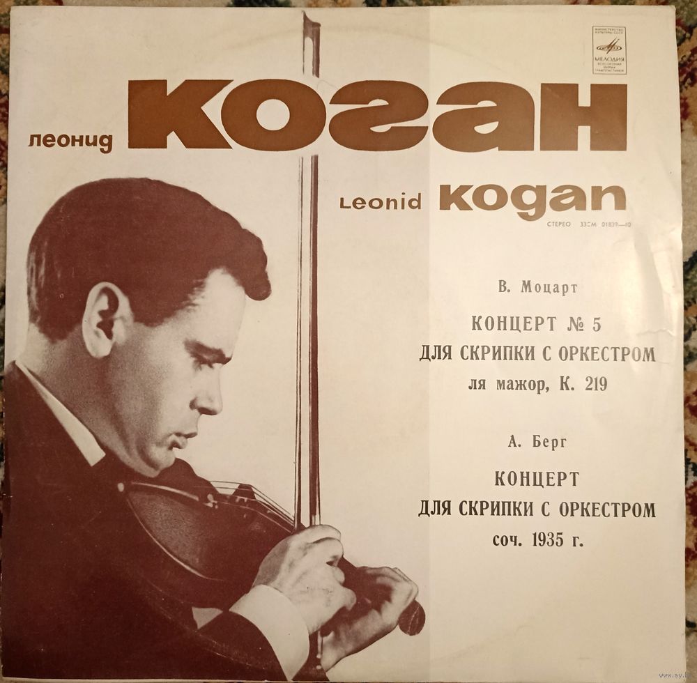 Леонид Коган - В. Моцарт / А. Берг – Концерт 5 Для Скрипки С Оркестром Ля Мажор, К. 219 / Концерт Для Скрипки С Оркестром, Соч. 1935 г.