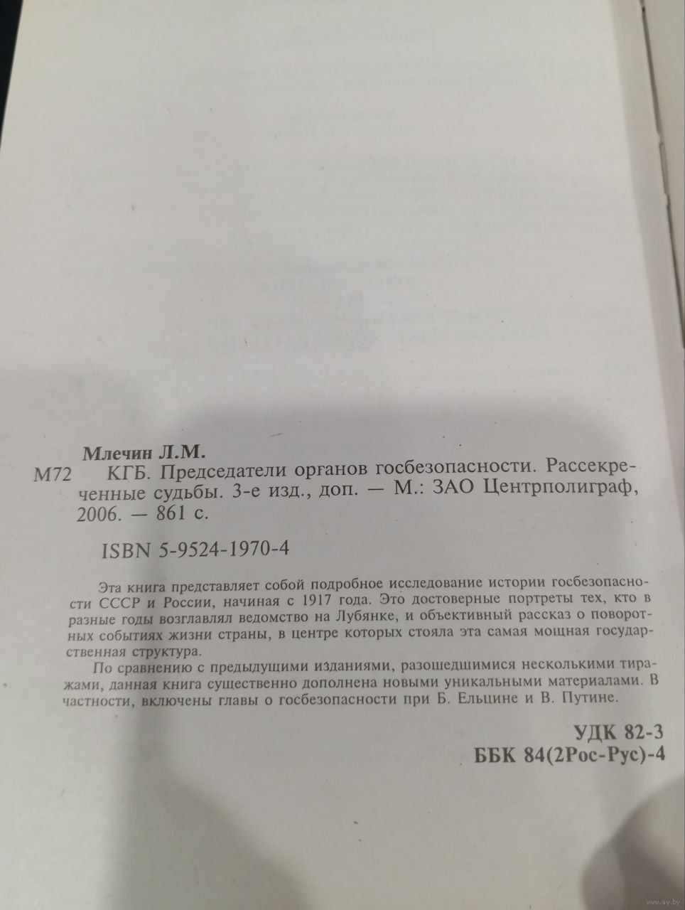 Книга Леонида Млечина "КГБ. Председатели органов госбезопасности. Рассекреченные судьбы" — уникальное документальное исследование, посвященное истории советских спецслужб через биографии их руководителей. Автор, известный журналист и историк, рассказывает о двадцати председателях ВЧК-ОГПУ-НКВД-МГБ-КГБ, людях, которые на протяжении десятилетий определяли политику государственной безопасности и вершили судьбы миллионов. Издание 2006 года, издательство "Центрполиграф" (Москва), серия "Особая папка Леонида Млечина".