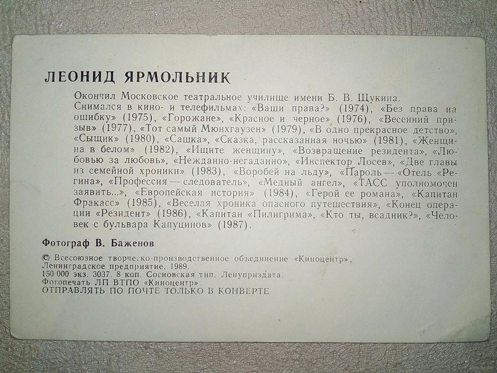 Леонид Ярмольник 1989 г артист актёр