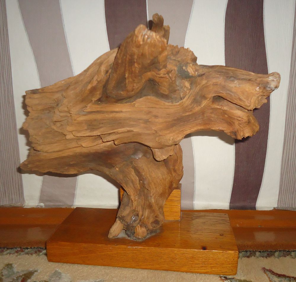 Высота общая 32 см. Изготовлена из коряги, с постаментом. Автор Е. Пулхов, 1960-е годы.