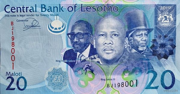 Лесото 20 малоти образца 2019 года UNC p22