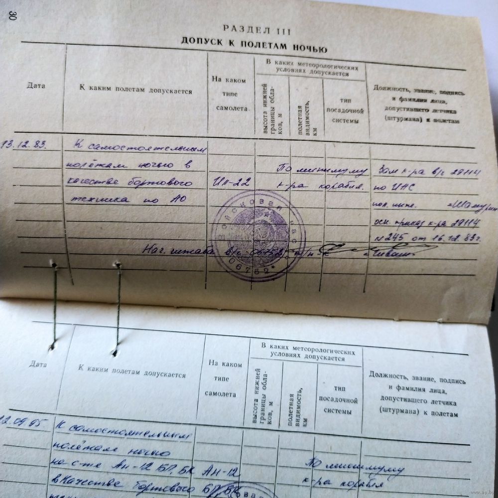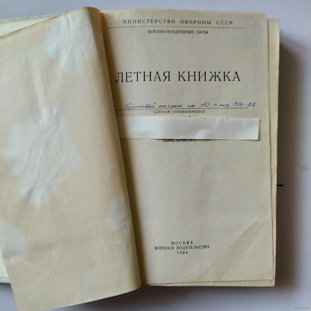 Летная книжка 1984 год.