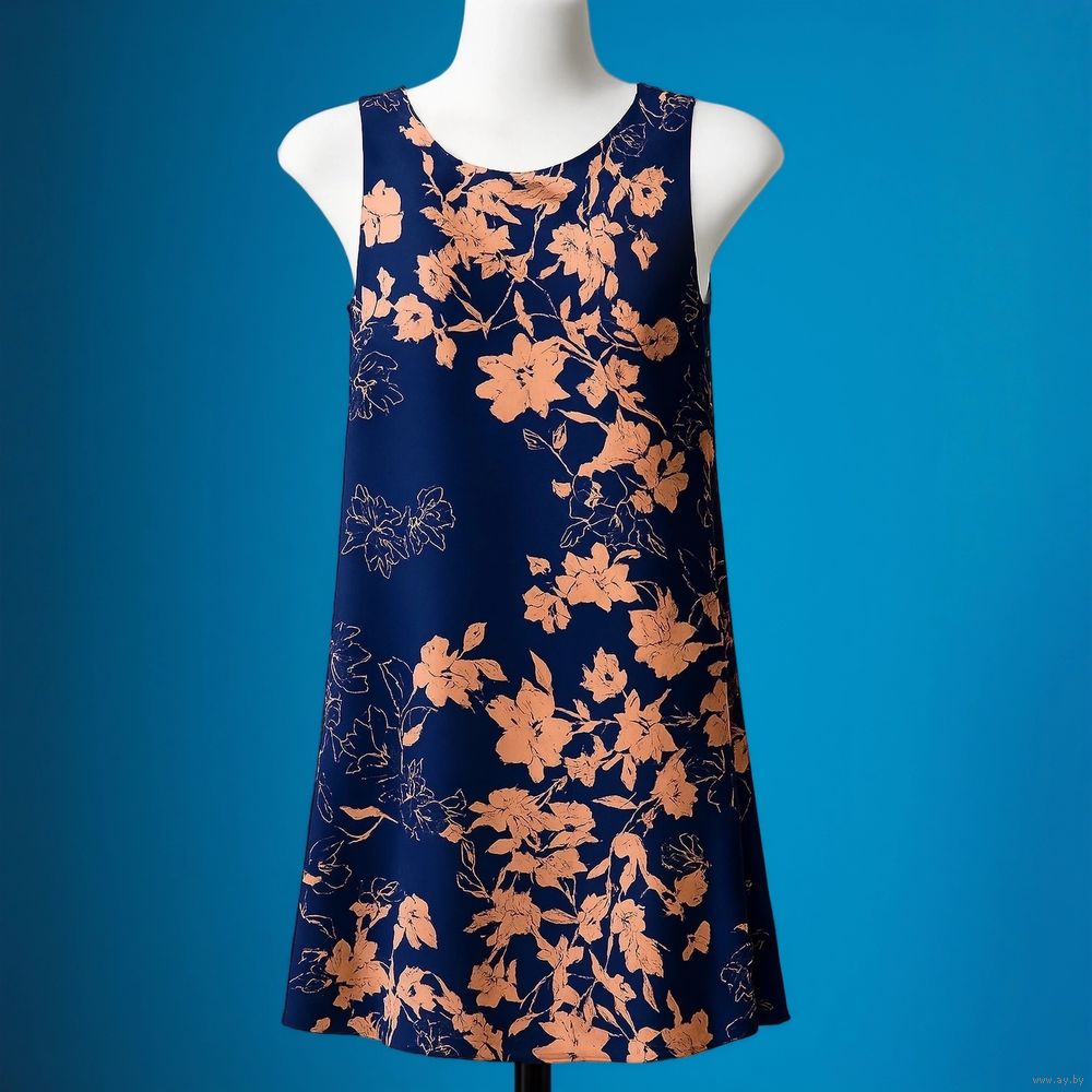 Темно-синее платье с цветочным принтом идеально подойдет для летних дней. Свободный крой и легкая ткань обеспечат комфортный и стильный образ. Без рукавов и с круглым вырезом, это платье прекрасно подчеркнет вашу индивидуальность. Универсальный дизайн и контрастные цвета делают его подходящим для любого случая.