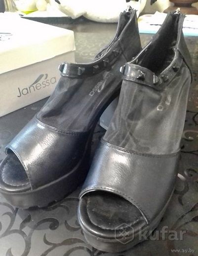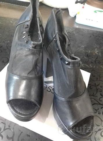 Летние ботильоны, на р-р 38-39, новые. Каблук 10см, танкетка 4см, по стельке 25см. Очень удобные и легкие, на ногах не чувствуются. У меня сейчас отекают ноги и не застегивается замок сзади, поэтому продаю. Покупала их на ЛаМоде на скидке за 78руб. Продам намного дешевле.