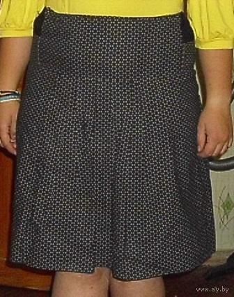 Легкая юбочка на лето (пр-во Италия), на р-р 46-48, на подкладке. Состав ткани 95% COTTON, 5% ПОЛИУРЕТАН. Подкладка 100% полиэстер. ПОТ 40см (тянется до 45см, т.к сзади в поясе вставлена резинка), ПОБ 55см, длина 54см (до колена). На фото девушка ростом 158см. Цена символическая.