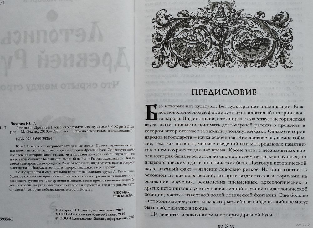 Большой энциклопедический формат. Тираж 4000 экз. 318 стр. Юрий Лазарев рассматривает летописные своды "Повести временных лет" как ключ к многочисленным загадкам истории Древней Руси. Существует ли более древняя история нашей страны, чем мы знаем по учебникам? Откуда пришли и кто такие славяне? Был ли "призванный на Русь" Рюрик скандинавом? Как на самом деле произошло крещение Руси? Автор книги ищет ответы на эти вопросы в летописи и обнаруживает много интересных фактов в ее строках.