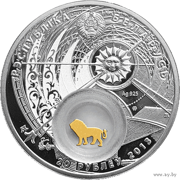| Качество: "пруф", со вставкой (прозрачная капсула с находящимся в ней подвижным серебряным с позолотой филигранным элементом в виде Льва). | |