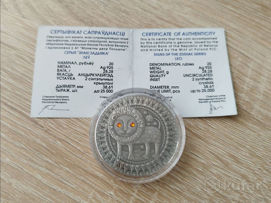 Добрый день, продам коллекционную монету национального банка Республики Беларусь, Лев из коллекции Знаки Зодиака 2009
