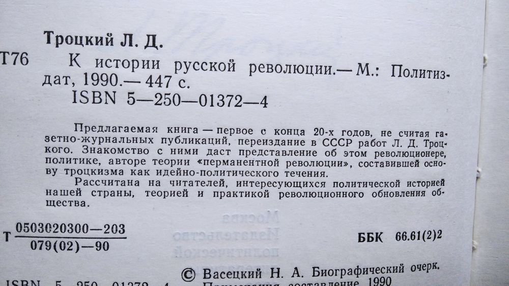 Первое с конца 20-х годов, не считая газетно-журнальных публикаций, переиздание в СССР работ Л. Д. Троцкого. Знакомство с ними даст представление об этом революционере, политике, авторе теории "перманентной революции", составившей основу троцкизма как идейно — политического течения.