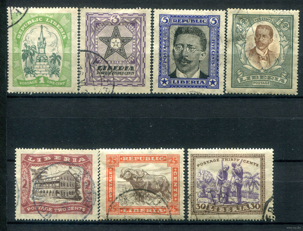 Либерия - 1923г. - ландшафты, фауна, архитектура, известные люди - 7 марок - гашёные. #4-W1-127-A-2