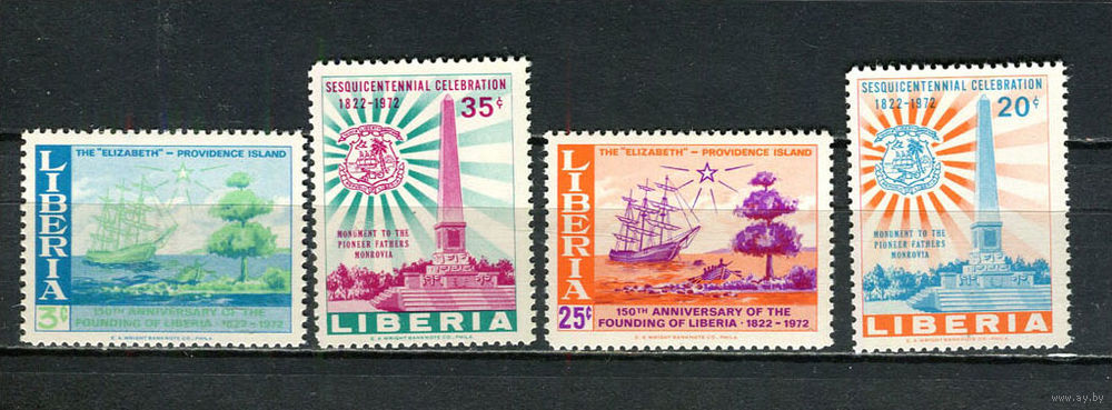 Либерия - 1972 - 150-летие основания Либерии - [Mi. 819-822] - полная серия - 4 марки. MNH. (Лот 51HW)-TG3P31