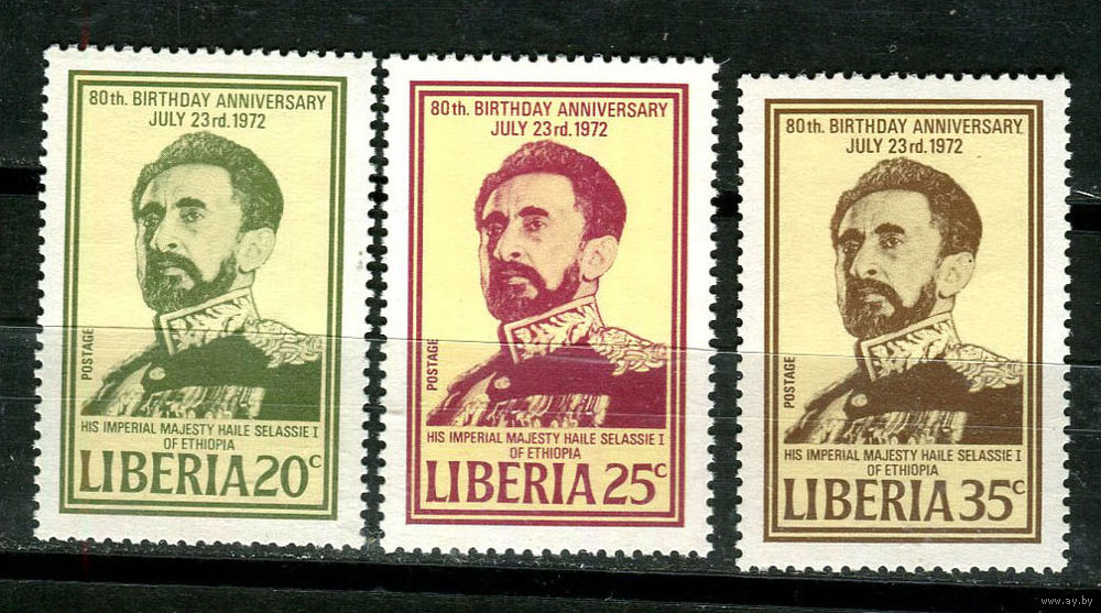 Либерия - 1972 - 80-летие Императора Эфиопии - Хайле Селассие - [Mi. 842-844] - полная серия - 3 марки. MNH. (Лот 41JD)-TG2P3