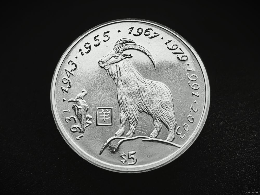 Либерия. 5 долларов 1997 - Год Козы. Торг.