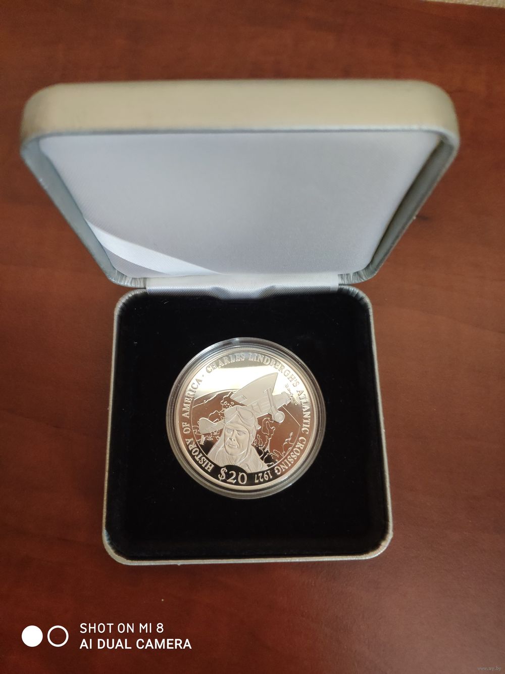 20 ДОЛЛАРОВ 2001 ГОДА. ЛИБЕРИЯ. ПЕРЕЛЕТ ЛИНДБЕРГА ЧЕРЕЗ АТЛАНТИКУ