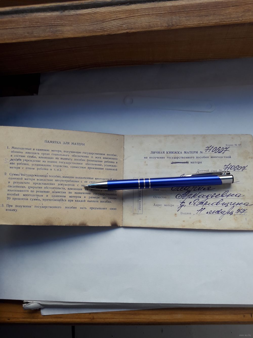 Личная книжка матери на получение государственного пособия
