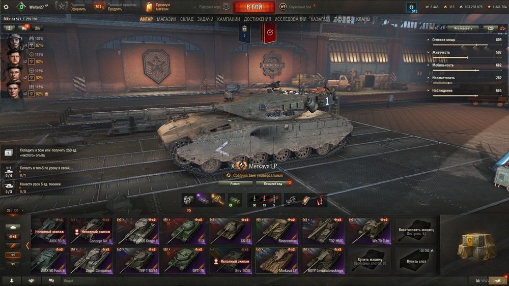Личный аккаунт Мир Танков. Огромное количество техники в ангаре. Прем танков 8-уровня 50 штук, премы и акционные 9-уровня 20 штук, прем танки 10 уровня 19 штук, просто 10-ки 33шт., из одиннадцатых уровней MBT-B и ARL Project F. Так же множество премиум танков для восстановления. Большое количество резервов для прокачки экипажа, 100+ млн. серебра, 1,4 млн. опыта, 8500 бон, 700 дней премиум аккаунта.