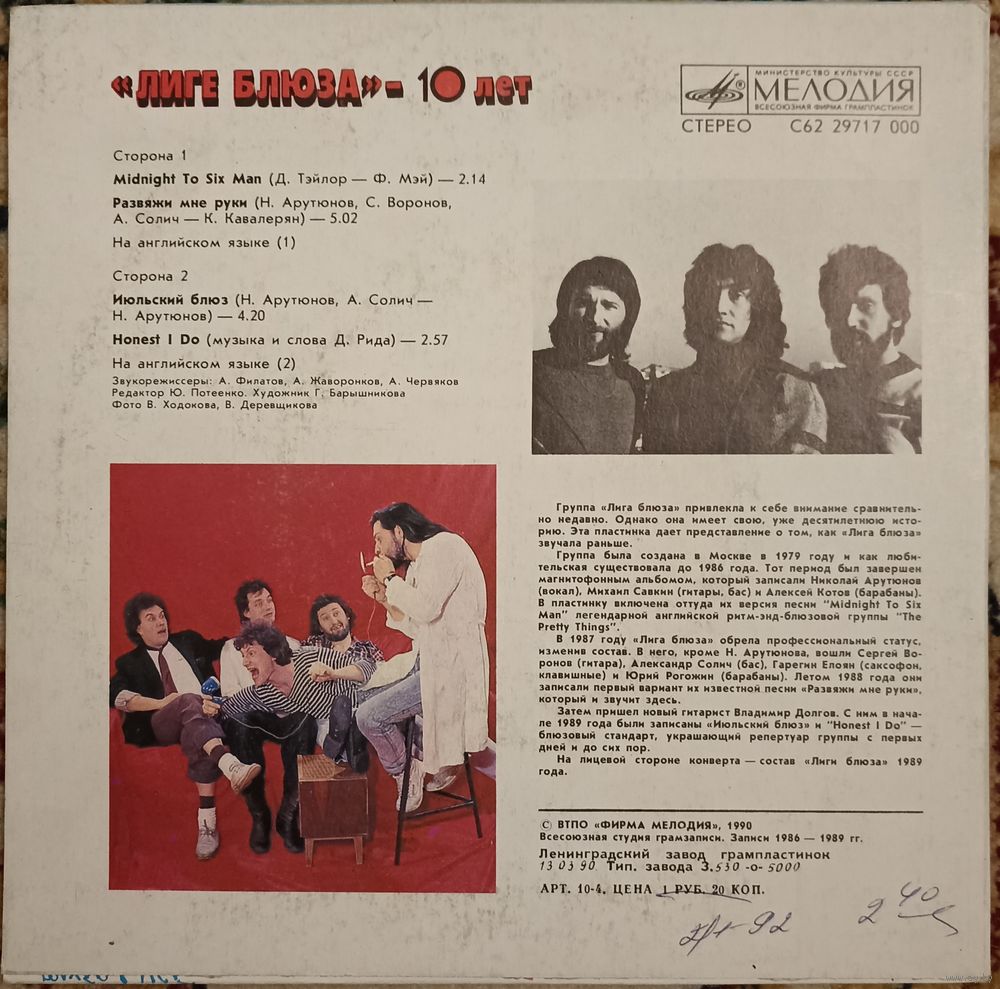 Лига Блюза – "Лиге Блюза" - 10 Лет. (Миньон)
