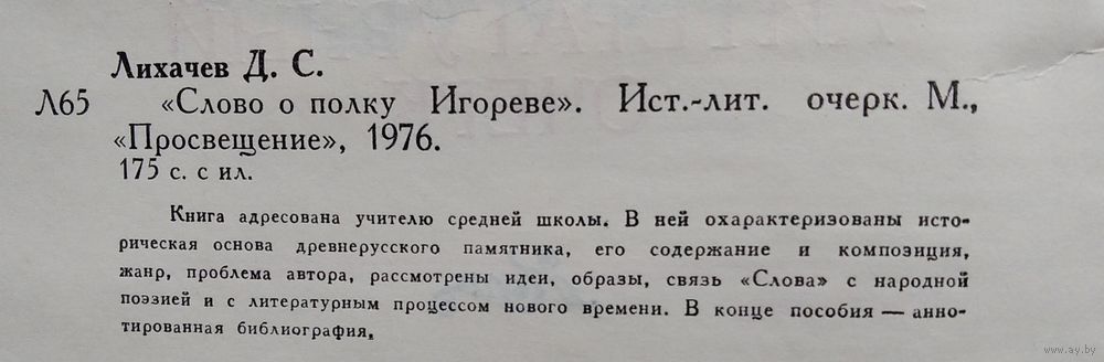 Лихачев Д.С. Слово о полку Игореве`. Историко-литературный очерк. М. Просвещение 1976 г. 176с. Твердый переплет, Увелич формат.