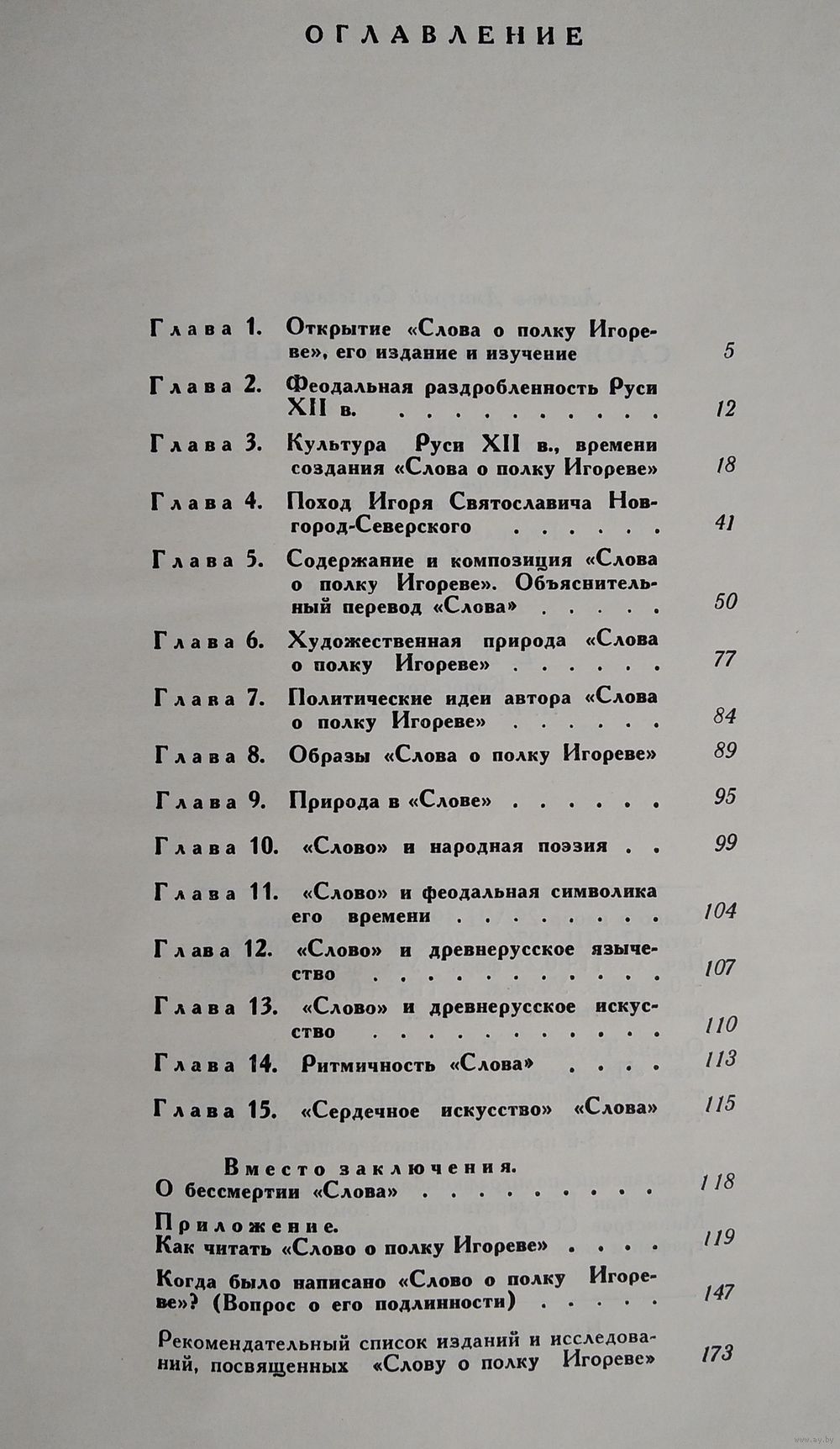 Книга адресована учителю средней школы. В ней охарактеризованы историческая основа древнерусского памятника, его содержание и композиция, жанр, проблема автора, рассмотрены идеи, образ, связь Слова с народной поэзией и с литературным процессом нового времени. В конце пособия - аннотированная библиография.