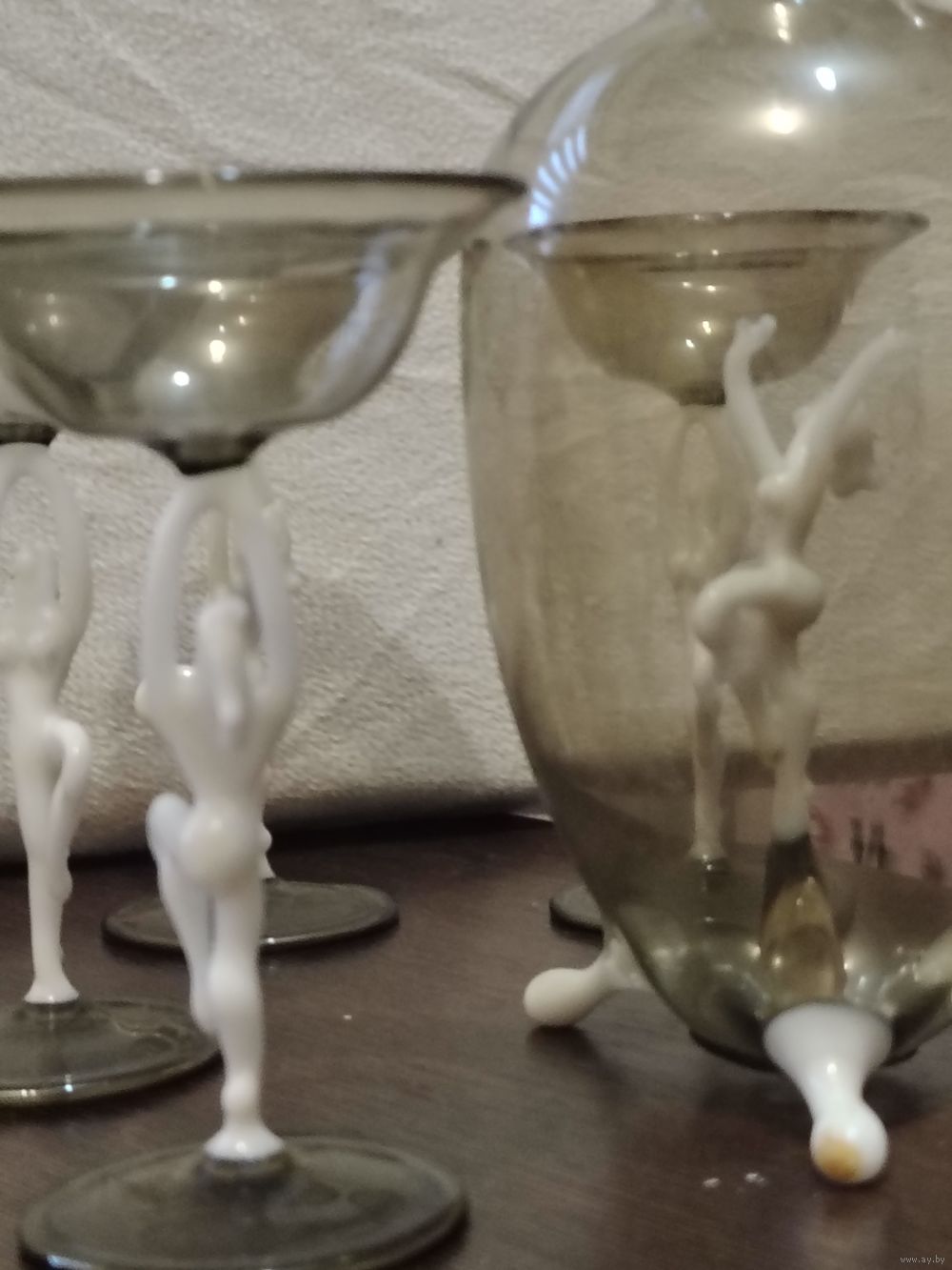 Ликерный набор Bimini Lauchsa "Танцовщицы" 20-30 годы прошлого века, Австро-Венгрия, из молочного стекла