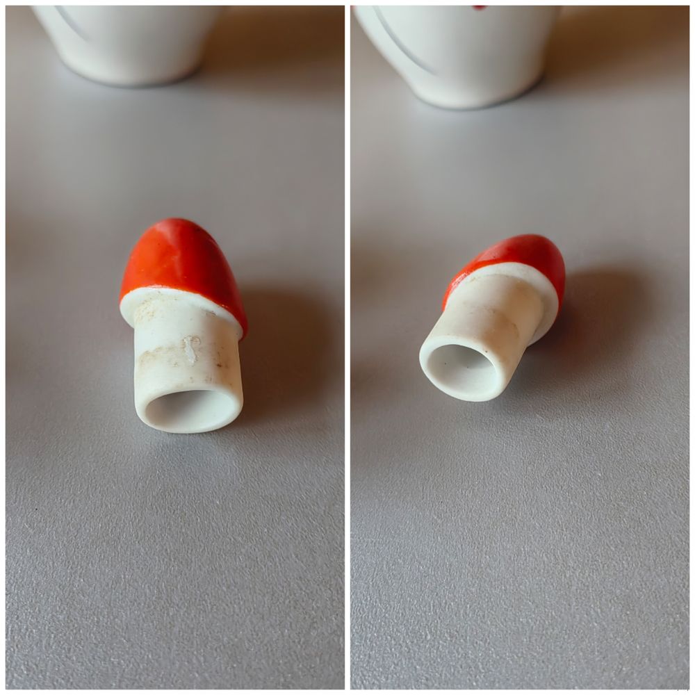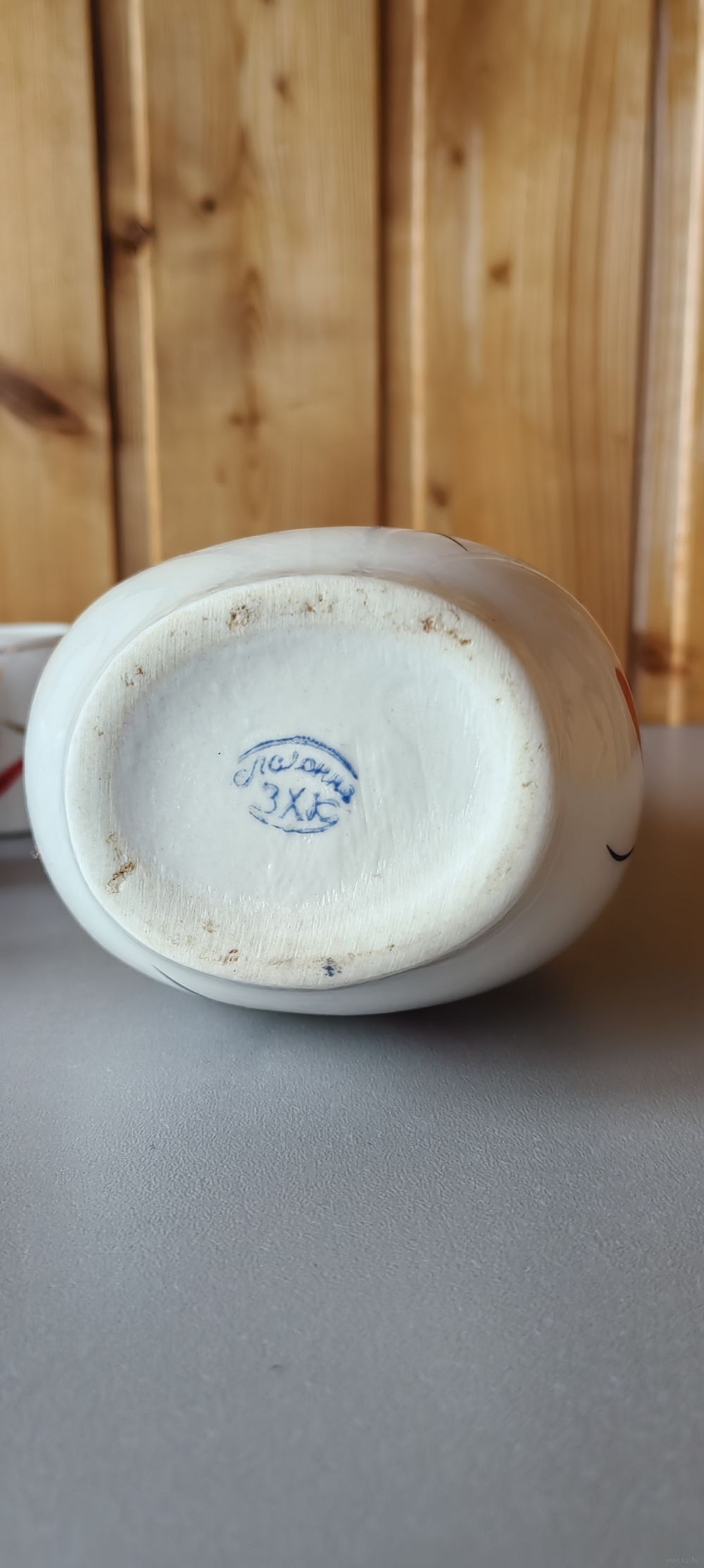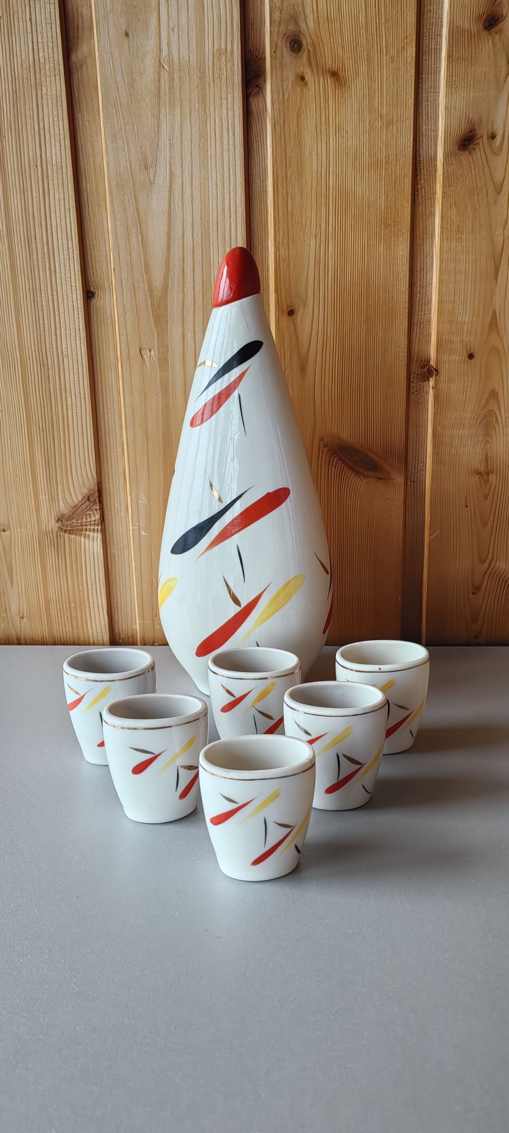 Сколов нет, но есть несколько трещин: на горлышке штофа две трещины и на двух рюмках. Возможно, пропустил еще где-то, но, кажется больше нет дефектов.