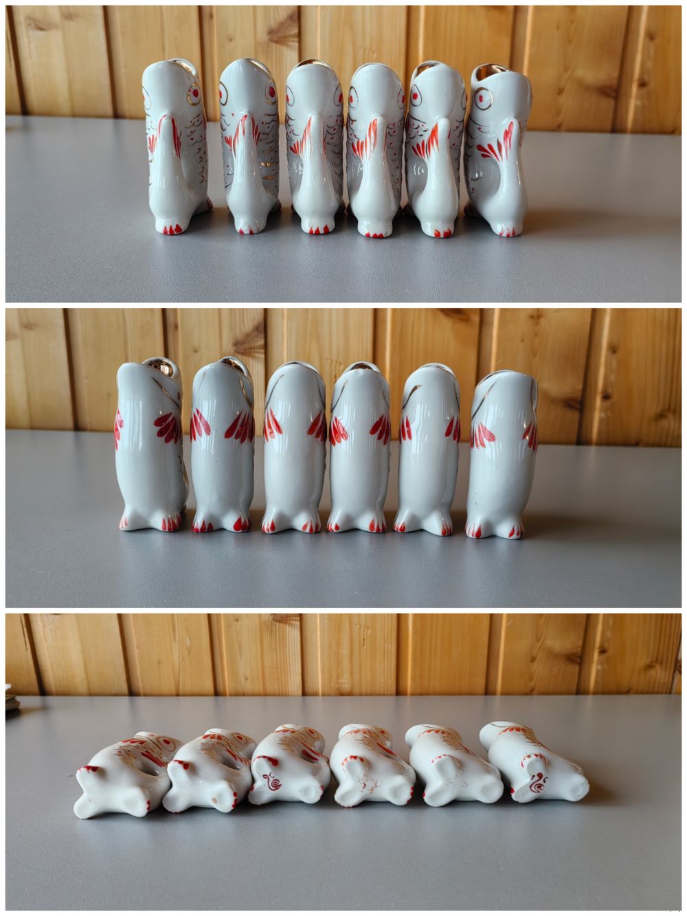 Сколов и трещин не нашёл, местами потёртости позолоты. В остальном, состояние на фото