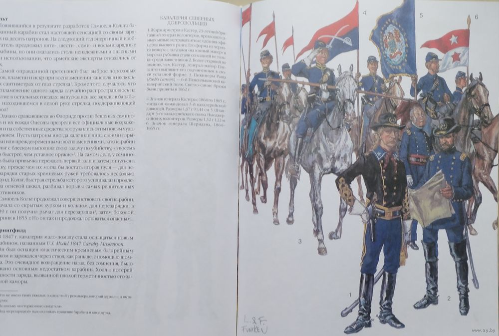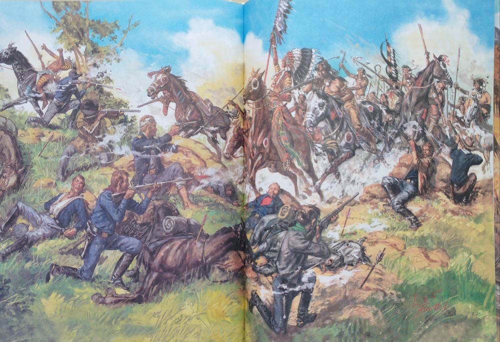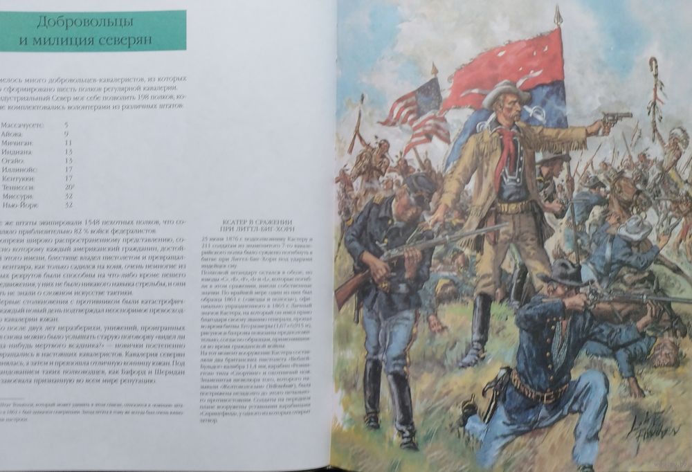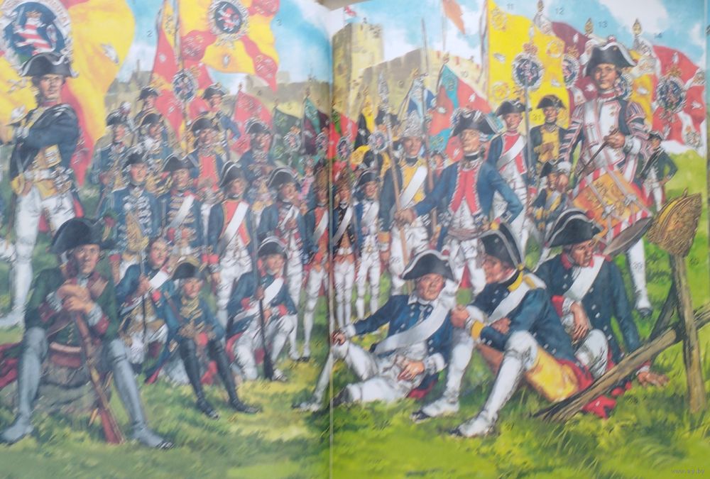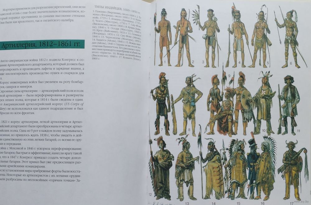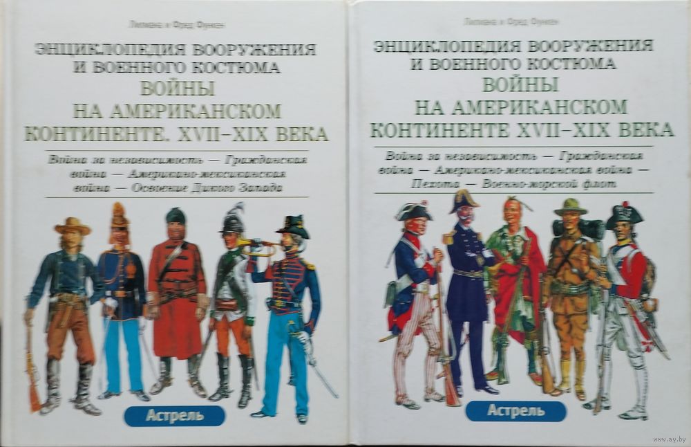 Цена за 2 тома. Большой энциклопедический формат. Тираж 3000 экз. 152+152 стр. Энциклопедия вооружения и военного костюма - капитальное французское издание, охватывающее историю развития мундира и оружия с древнейших времен до Второй мировой войны. Прекрасно иллюстрированное издание дает возможность представить себе как выглядел солдат любой из армий мира любой эпохи. Это уникальное издание не имеет аналогов, а проведенная авторами работа поражает охватом материала и детальной точностью рисунков. Энциклопедия вооружения и военного костюма. Войны на Американском Континенте XVII-XIX века. Первые британские колонисты капитана Джона Смита прибыли в Америку в 1607 году и основали там поселение Джеймстаун, назвав его так в честь английского короля Якова I. Король же даровал колонистам хартию, позволявшую им создать колонию в Виргинии. Сначала переселенцы поддерживали добрососедские отношения с коренными жителями – индейцами племени алгонкинов, объединеных под властью знаменитого вождя Поухантана. Но после его смерти отношения испортились, и началась первая индейская война, которая продолжалась с 1622 по 1637. Каждый год колонисты организовывали по три похода против воинов старого вождя Опеканканафа. Потом вроде бы удалось договориться о мире, но уже в 1641 году военные действия начались опять и продолжались до 1669 года. Французы массово в Америку не переселялись. Их было мало, и ссориться с индейцами из-за земли им не было никакого резона. А уж из-за охотничьей добычи ссориться было бы ещё большей глупостью, поскольку девственные североамериканские леса в то время просто кишели дичью. Да что там говорить, если ребенка родители отправляли в лес добыть индюшку к обеду с… палкой! И тот шел по лесу, находил на нижней ветке раскидистого дерева спящих индюшек и… бил палкой по голове самую большую, а то и не одну. Вот почему англичане воевали с индейцами с самого начала, а вот французы – нет. Последней войной XVII века между колонистами и индейцами стала так называемая «война короля Филиппа», которая длилась с 1675 по 1676 год. Затем последовали официально объявленные «индейские войны» уже между Англией и Францией: