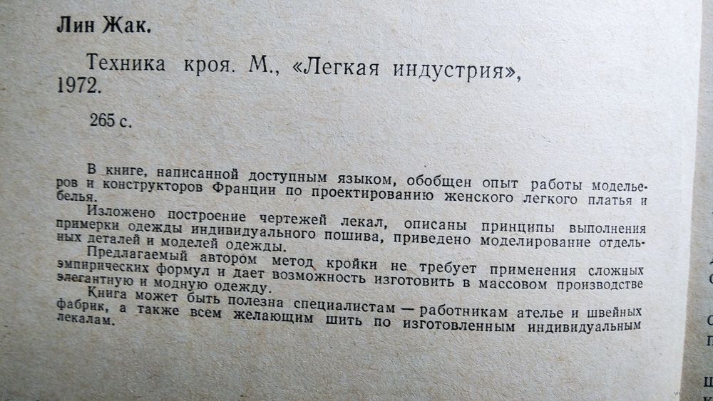 В книге, написанной доступным языком, обобщен опыт работы модельеров и конструкторов Франции по проектированию женского легкого платья и белья. Изложено построение чертежей лекал, описаны принципы выполнения примерки одежды при индивидуальном пошиве, приведено моделирование отдельных деталей и различных изделий. Предлагаемый автором метод кройки не требует применения сложных эмпирических формул и дает возможность изготовить элегантную и модную одежду. Книга может быть полезна специалистам — работникам ателье и швейных фабрик, а также всем желающим шить по изготовленным индивидуальным лекалам.