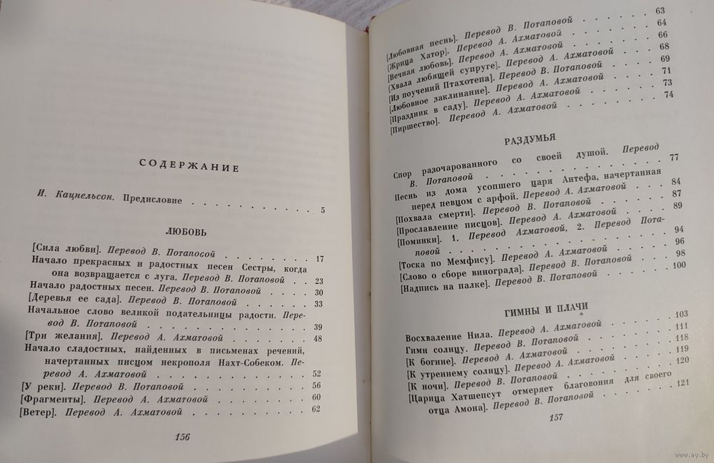 Необыкновенно выразительные, образные и удивительно созвучные современности размышления древних египтян о жизни, любви, смерти, богах, природе, великолепно переведенные ученицей С. Маршака В. Потаповой и не нуждающейся в представлении А. Ахматовой. Издание дополняют вступительная статья, подстрочные переводы и примечания известного советского египтолога И. Кацнельсона.