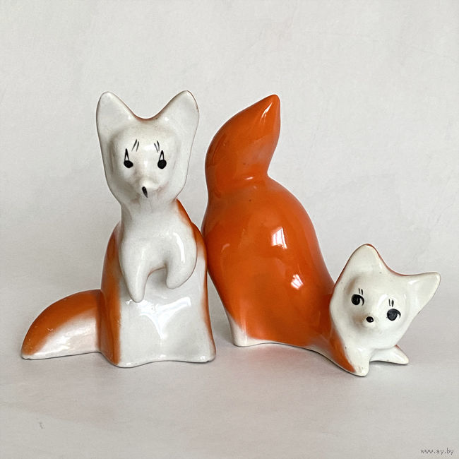 Статуэтки Лисички. СССР, Городницкий фарфоровый завод, 1970-е. Состояние хорошее, без трещин и сколов. Высота около 12 см