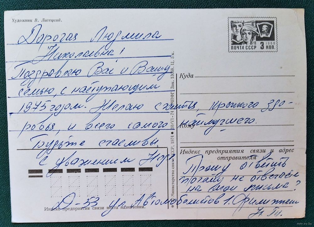 Лисицкий В. С Новым Годом! (З Новим роком!) 1977 г. ПК. Прошла почту.